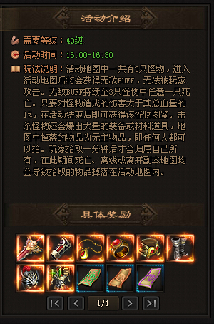 每日16:00-16:30开启,等级49级以上的玩家均可进入封魔井。每次出现在封魔井内的,只有三只怪,但是,千万别小看了这些貌似弱小的怪物。它们可是从远古时代就一直存活至今的超级BOSS,唯有实力强大的驱魔人才能够将它们镇压。