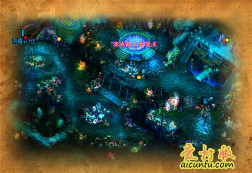 8转50级可进,地图怪物等级90-100,新增地图BOSS九天鹏王,怪物掉落鸿蒙元气,某些精英怪物死亡后可以使用洛阳铲挖掘。在南疆谷地会不定时刷新南疆大盗,击杀会掉落藏宝图(掉落拾取绑定,使用时限5分钟)及一些稀有道具,藏宝图可以进行挖宝。